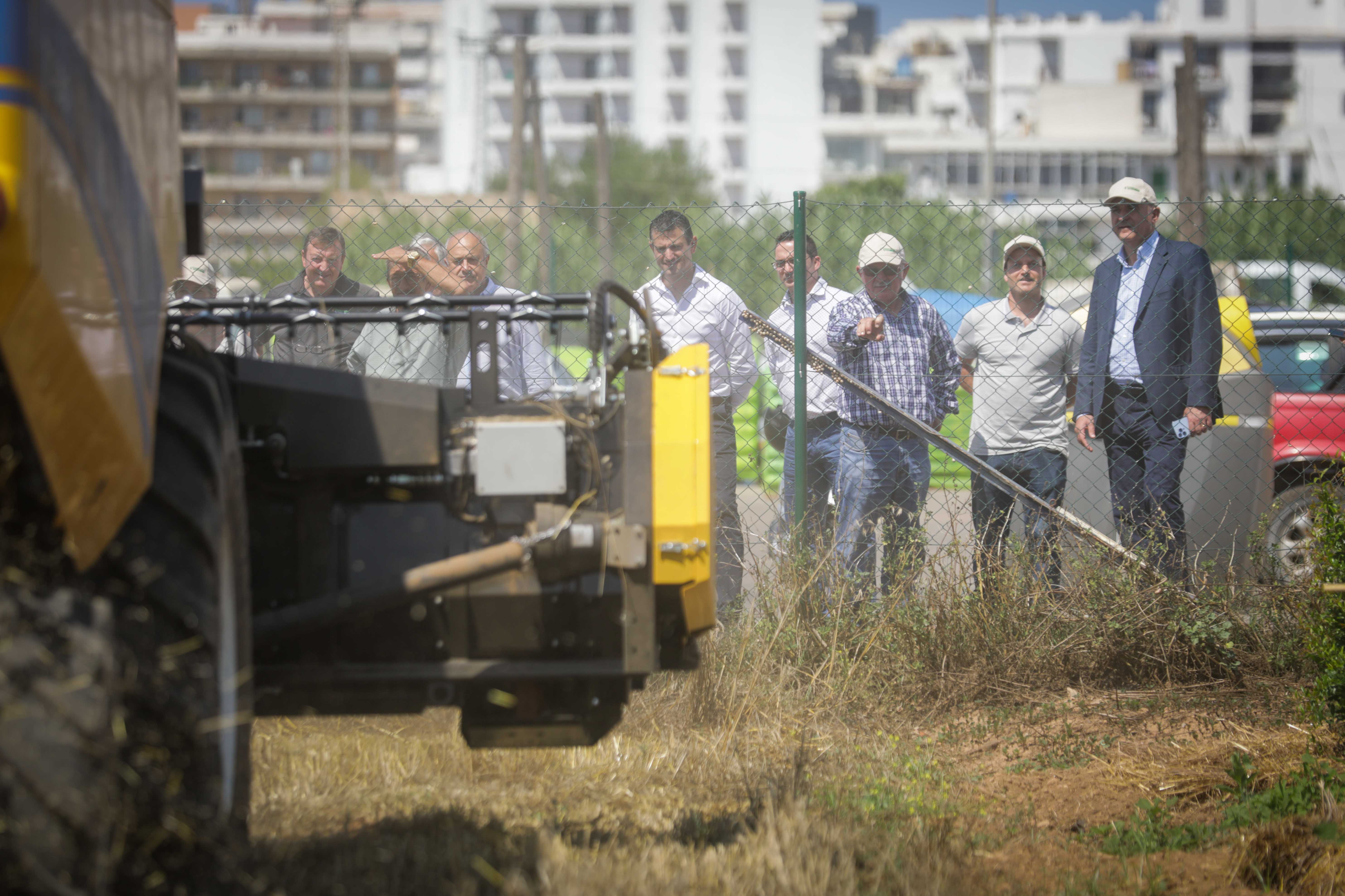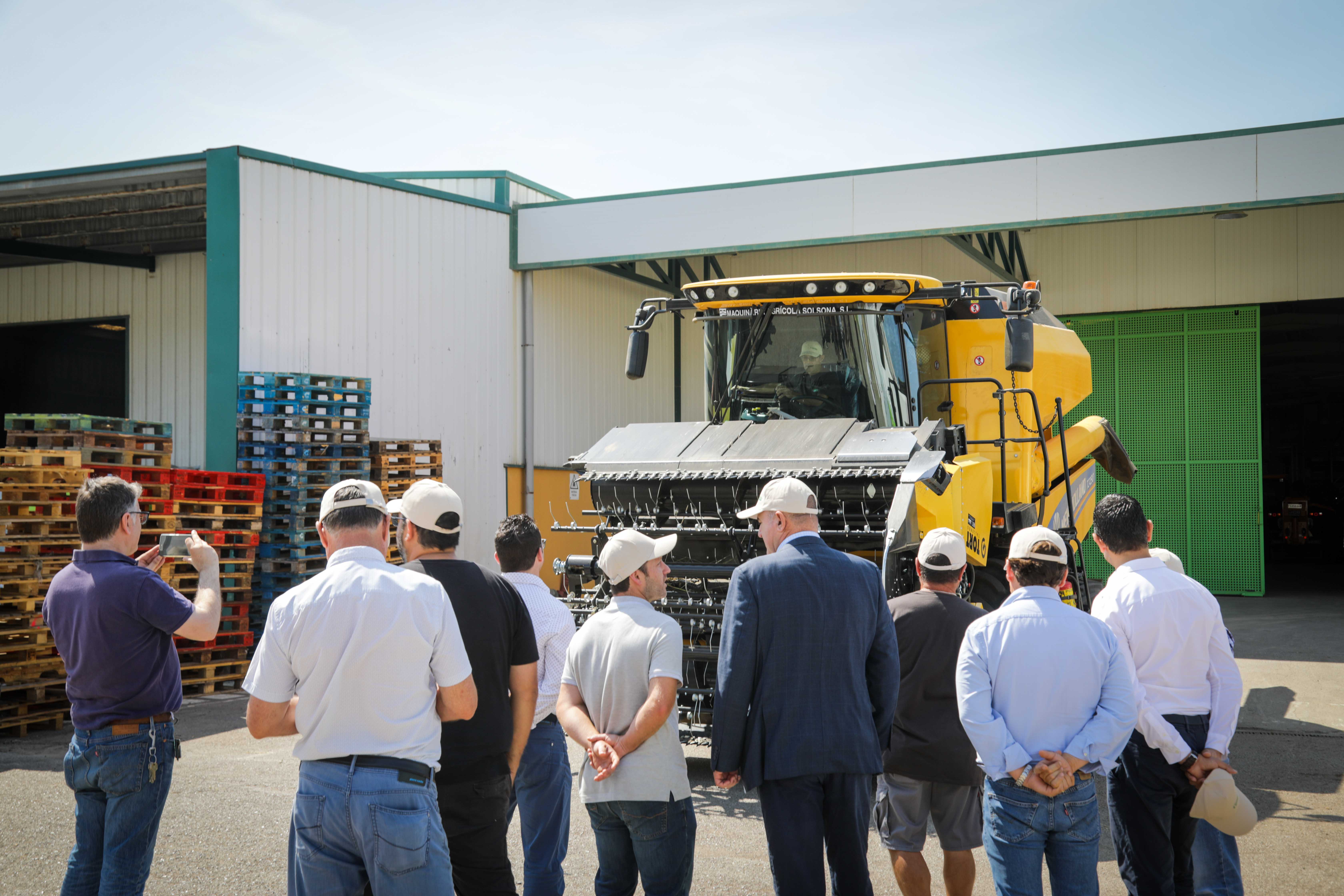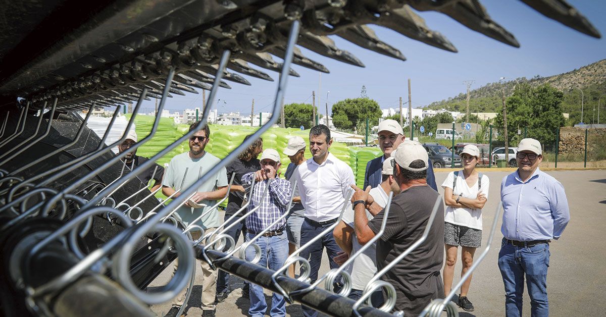 Both the president and the manager of the Sant Antoni Cooperative, Juan Antonio Prats, could not conceal their joy at "the new toy" they had just acquired. The machine is more than eight metres long and its main attraction is "the folding capacity of the 'cut', which measures 2.90 metres and allows the machine to access narrow paths. Once unfolded, the cut reaches almost five metres". The circumstances of the Ibizan countryside and access to the farms of many members of the cooperative, as Tur explains, "led us to choose the smallest machine on the market".